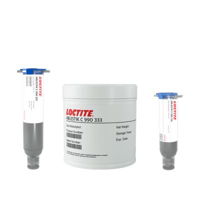 Henkel loctite 3888 is a room temperature cure epoxy adhesive designed for bonding of metals ceramics rubbers and plastics as used in electronic parts where good adhesion combined with electrical and thermal conductivity is required.